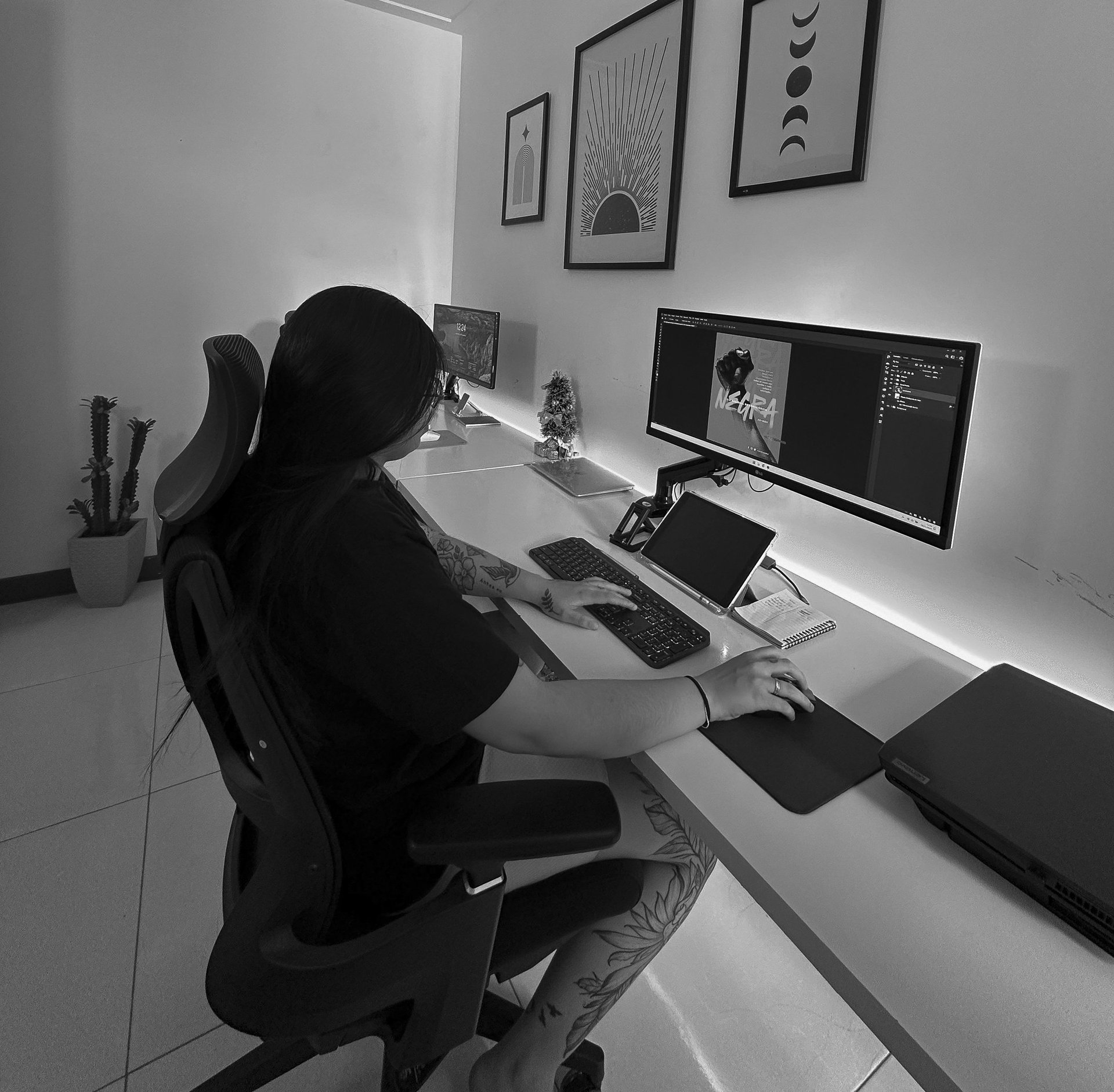 Eu mergulho de cabeça em cada projeto, buscando compreender a fundo o seu negócio. Faço reuniões para coletar informações essenciais e, sempre que necessário, envolvo você no processo criativo. Esse momento é de muito aprendizado, tanto para mim quanto para você.